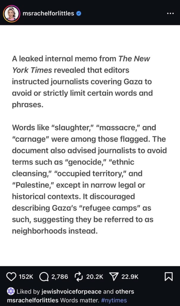 Ms. Rachel calls out anti-Palestinian bias at the NY Times.