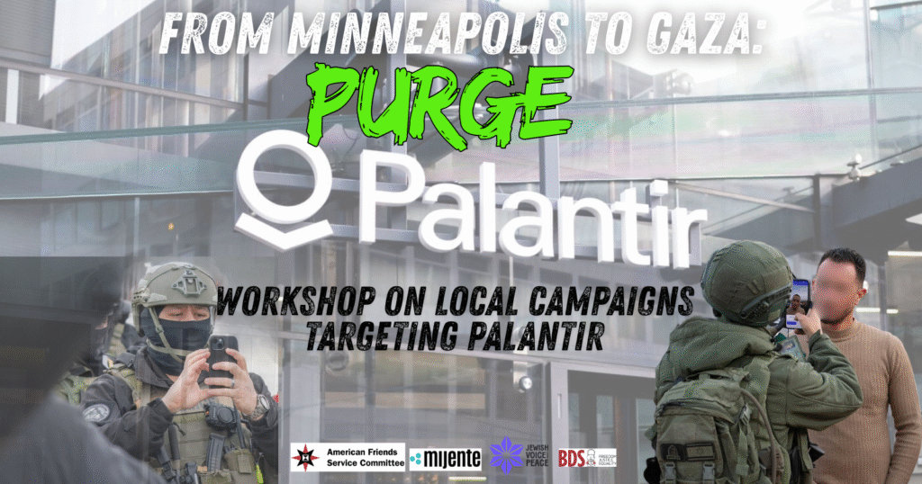 Join JVP and our partners on March 5 for a workshop to learn more about local divestment and boycott campaigns targeting Palantir contracts across the country.
